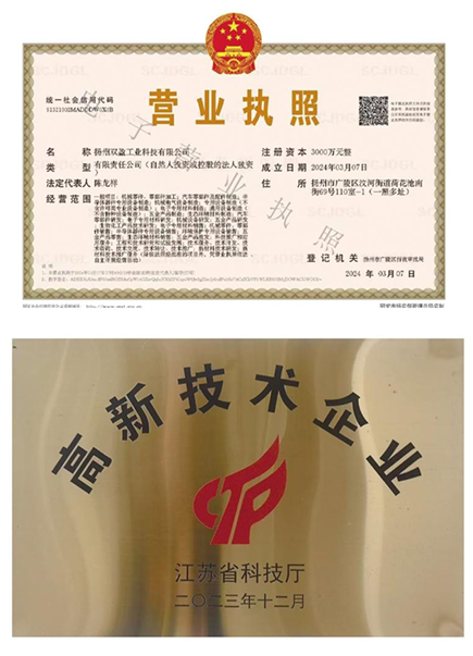 扬州双盈工业科技有限公司坐落在美丽锦绣的扬州市,距扬泰机场45公里、扬州东站5公里、高速路口4公里、交通便利。